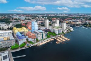 Alla gator, parken och kajområdet rustas upp. Flera fastigheter får påbyggnadsmöjligheter och bottenvåningarna öppnas för att skapa mer liv. Detaljplanen markerar startskottet för en ny stadsdel med en egen identitet.