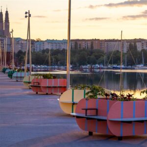 Kajen öppnar igen efter renovering. Inför sommaren fylls den med planteringar från Karshamra Gård, spel och möbler designade av Studio Era. Plåtparken ger Marievik ett härligt sorl där människor möts, äter, går på marknad och badar bastu intill Årstaviken.