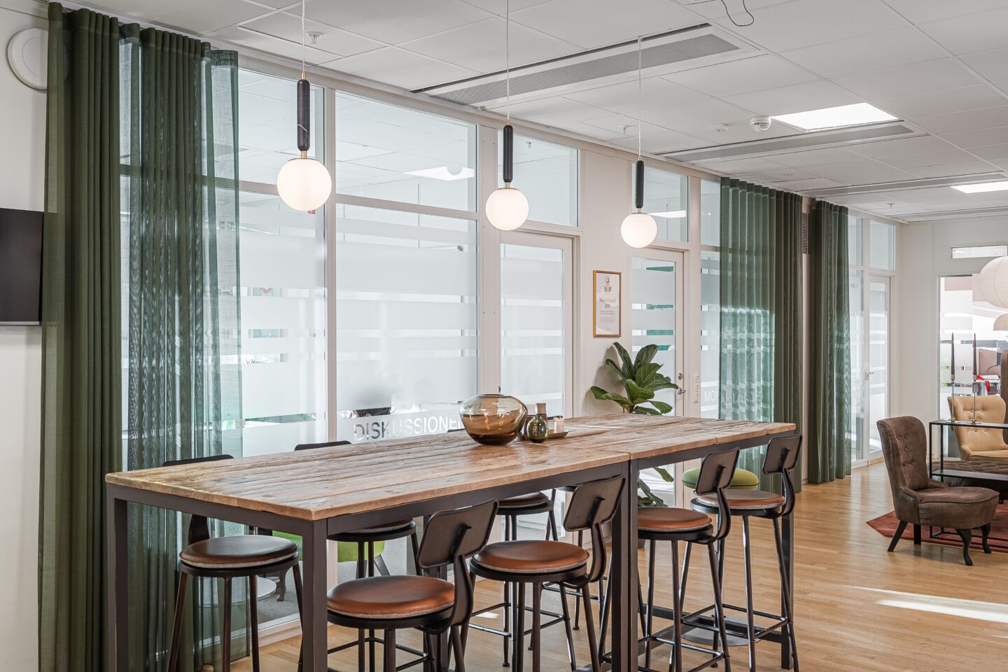 Lokalen har ett generöst ljusinsläpp tack vare stora fönster i två väderstreck. De öppna arbetsytorna kombineras med mötesrum i olika storlekar där utsikten över Sundbyberg bidrar till en ljus och inspirerande arbetsmiljö. Med sitt höga läge är detta en av fastighetens mest attraktiva lokaler.