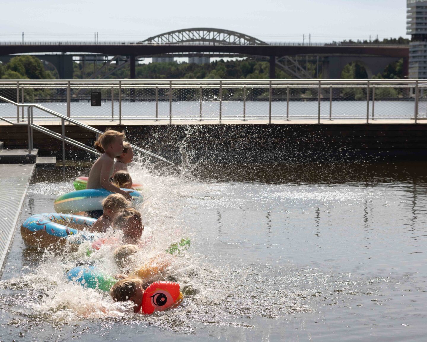Marieviksbadet i Stockholm erbjuder en unik badupplevelse med tre pontonbassänger. Här finns en 25-metersbassäng för motionssim, utrustad med väggar för vändning och handledare längs sidorna, perfekt för både träning och vardagsmotion. För den som söker lek och äventyr finns en bassäng med hopptorn, medan barnbassängen med fast botten och ett vattendjup på 80–100 cm är idealisk för familjer med små barn. Runt bassängerna breder bryggor ut sig med gott om plats för solbad, picknick och socialt umgänge – en levande mötesplats vid Årstaviken där du kan njuta av både dag och kväll.